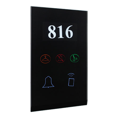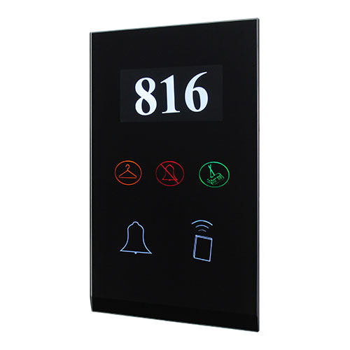 RF Intelligent Door Bell and Access Reader is a door bell touch panel which is installed outside the room by the door. It can control the panel to indicate your requirements via the door bell panel, such as Laundry, DND and Clean Room.